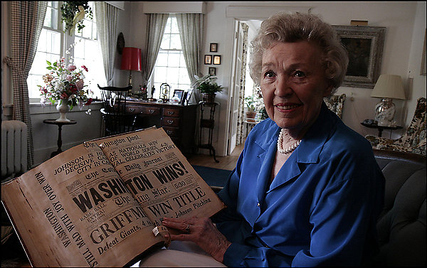 , Walter Johnson's daughter, flips through one of the scrapbooks her mother,