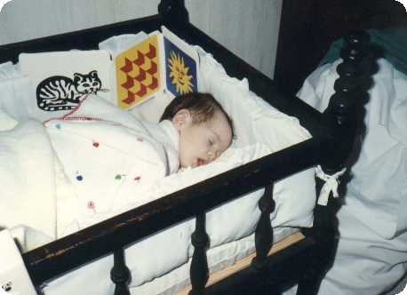 After Sarah outgrew the cradle, it was sent to Healdsburg, CA, in time for the birth of my cousin Andi Crowell's daughter, K. C., in 1989: